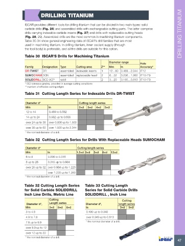 Table 30 ISCAR’S Drills for Machining Titanium