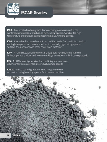 IC20 - An uncoated carbide grade. For machining Aluminum and other