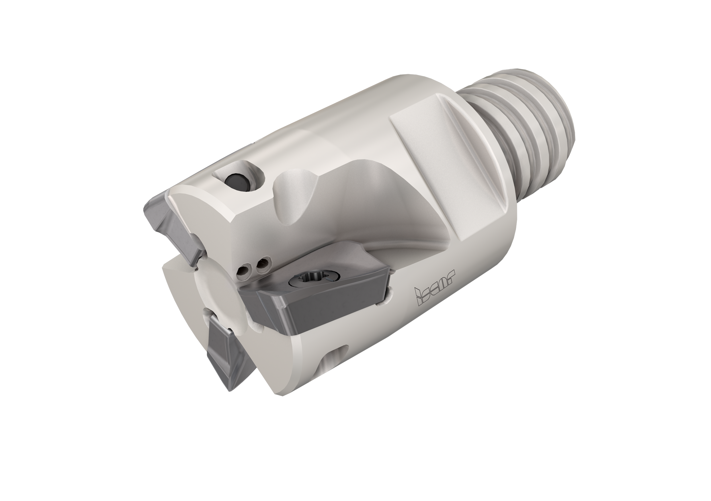 Fig. 2- Uma ferramenta de fresamento facial HELI-3-MILL com pastilhas triangulares. A pastilha já fornece 3 arestas de corte helicoidais indexáveis.